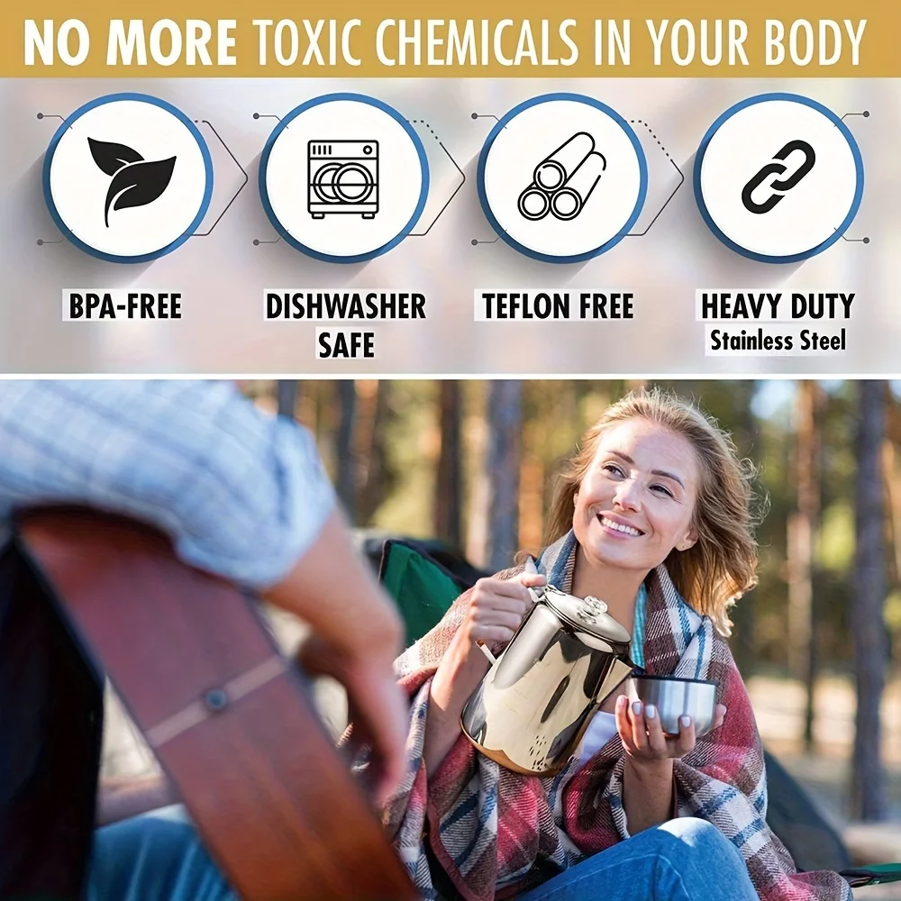 - ☕【NO ALUMINUM & DURABLE】All metal – inside and out is made of 100% high-quality 304 food grade stainless steel for excellent resistance to corrosion. Ergonomic&heat resistant design hardwood handle increase the comfort of pouring and filling. Rugged construction withstands rigors of drops and knocks while on camping.