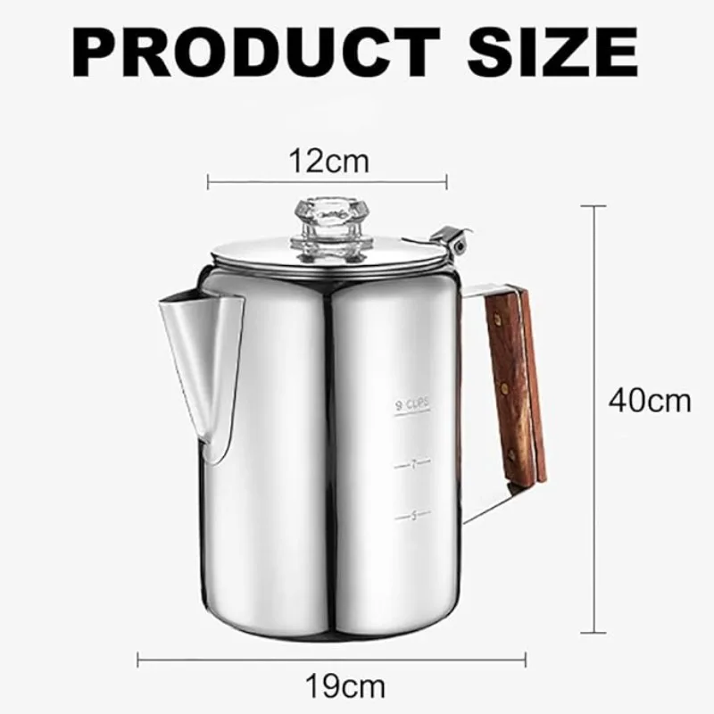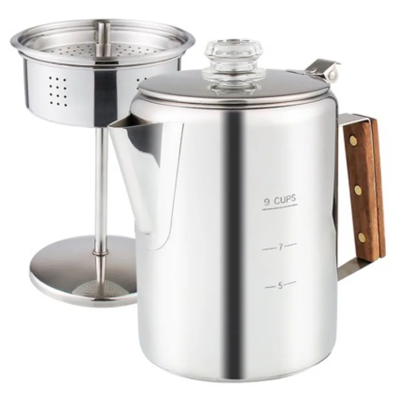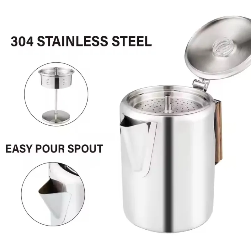 Stainless Steel Coffee Percolator Comfort Grip Wooden Handle Coffee Maker Portable Camping Home Stovetop Coffee Pot Easy Pouring